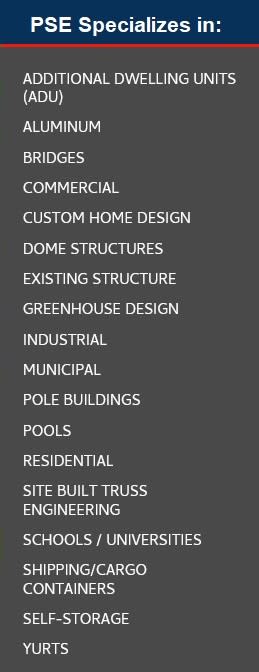 PSE Consulting Engineers, Inc., is a structural engineering firm that is well established as a leader in storage/cargo container and self-storage facility engineering. We also specialize in sustainable residential, commercial, and industrial engineering. The goal of our firm is to balance your needs with the latest available building materials and technologies to optimize your budget and building schedule. Our experienced team of engineers grounds its approach in traditional engineering, but our Eco-friendly designs are indeed, cutting edge. We are licensed in all 50 U.S. States and in four Canadian provinces.
