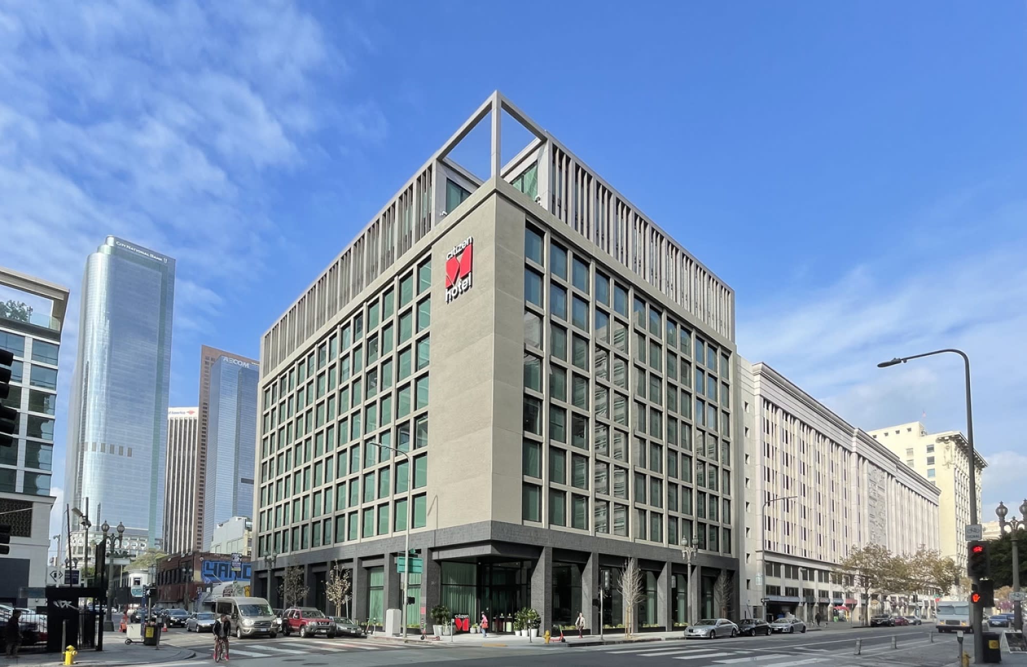 Green Building Description : citizenM has proudly closed the largest-ever hospitality financing package under the U.S. Department of Energy’s Commercial Property Assessed Clean Energy (C-PACE) program for this project. And it is not only a complaint to California green building code, it also helps the hotel to achieve a LEED BD+C Gold certificate. It had achieved 3 of 5 categories of low emitting material. The modular construction makes the hotel get better thermal and acoustic performance due to the double-wall and the air-gap design.
